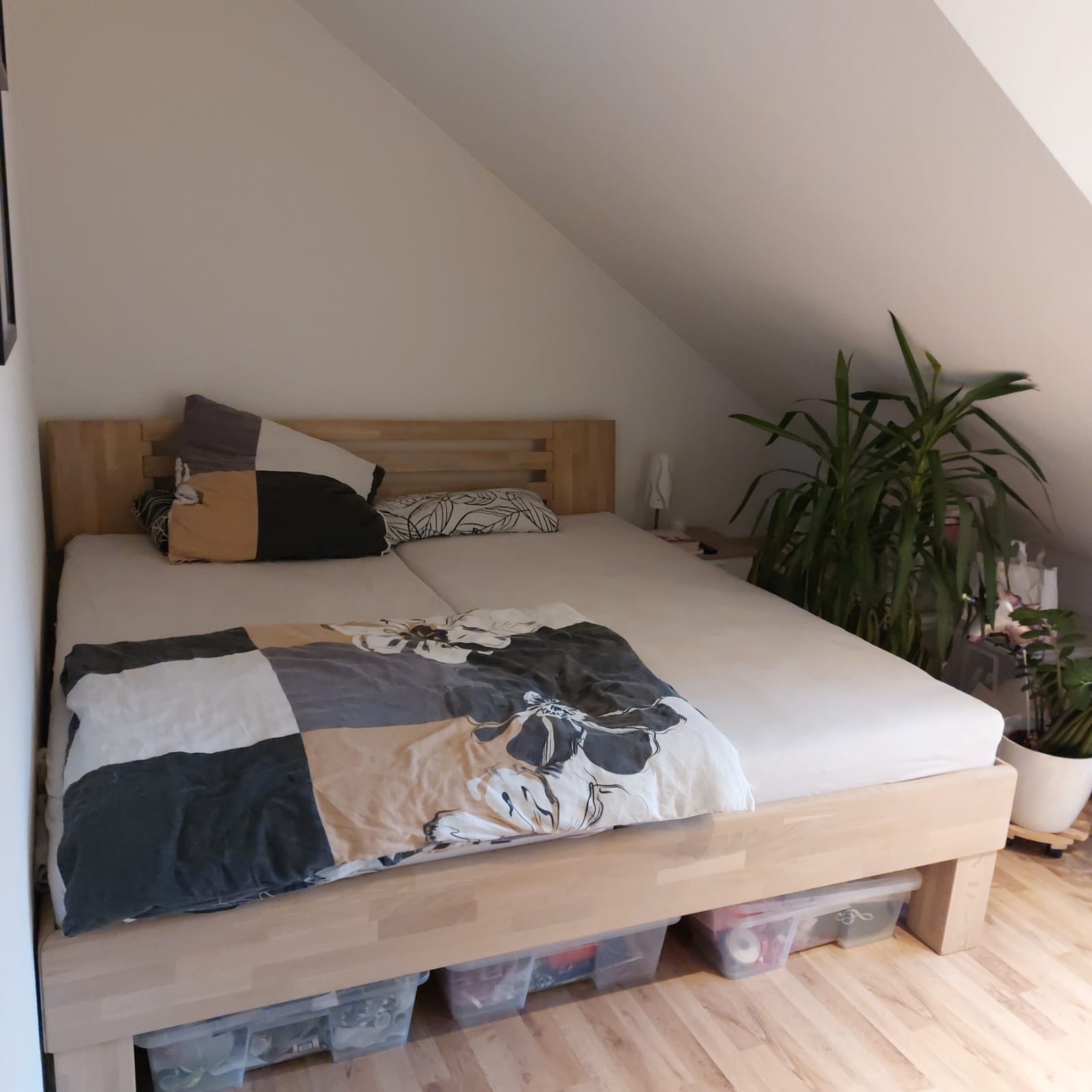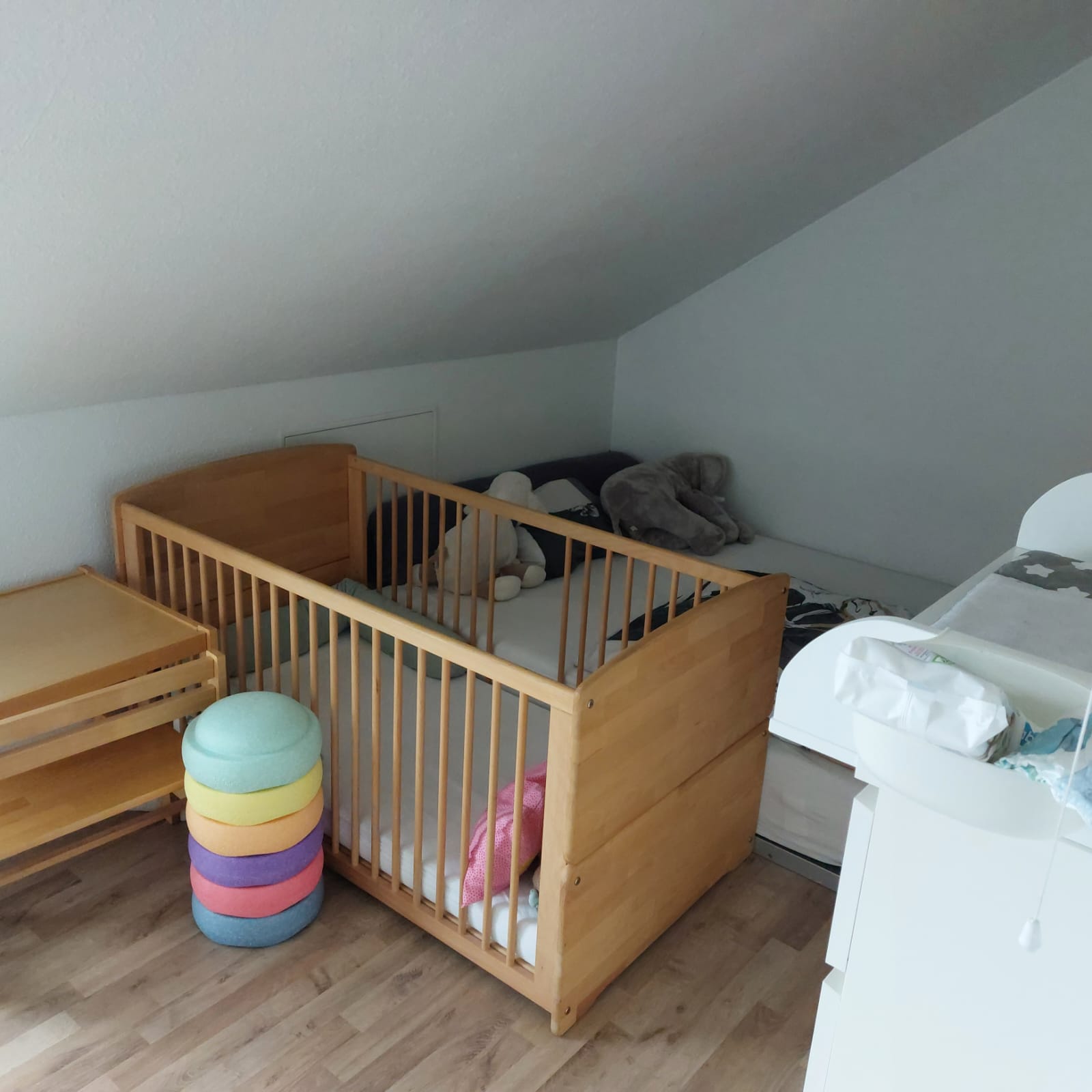 Es gibt nur diese eine Wohnung im Dachgeschoss, daher haben Sie die ganze Etage exklusiv zur Verfügung. Dementsprechend können Sie den Flur vor der Wohnung auch bspw. zum Aufstellen einer Garderobe nutzen. Außerdem bieten ein Abstellraum in der Wohnung und ein weiterer abschließbarer Kellerraum viel Abstellfläche. So bleibt viel echter Wohnraum, den sie uneingeschränkt nutzen können.